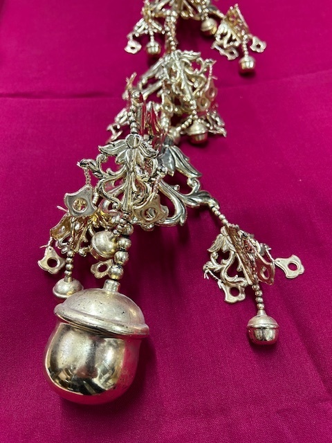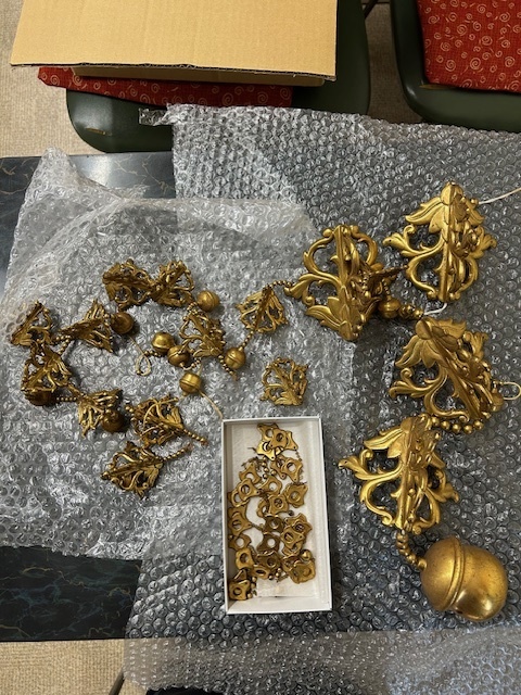 お寺様の依頼を受け、仏天蓋の修復を行いました。中糸が切れてバラバラの状態です。