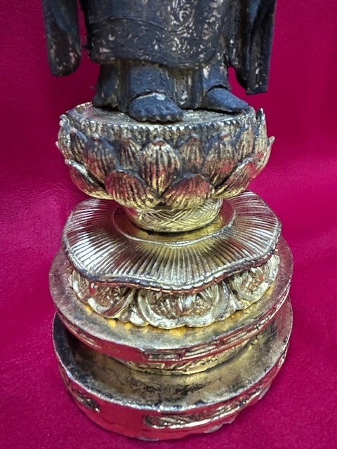 お客様より仏像のほこり払いと金箔部分の洗いのご依頼を受けました。