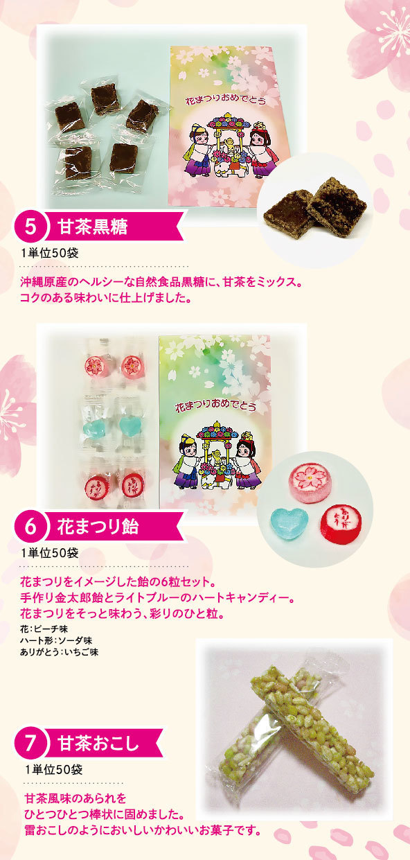 甘茶を使った甘茶おこし、甘茶黒糖、甘茶キャンディーなどもございます。